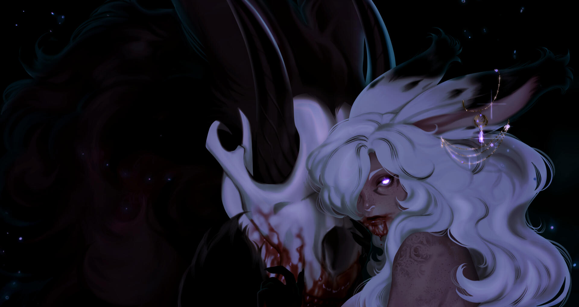 largely considered to be folklore, "wickers" are what look to be amalgamations of half a dozen other animals, but all with the same purpose: to hunt down large gatherings of woodsin to the source, and snuff them out. consider them as nature's pest control, in a sort; heeding the whims of elementals, they carry on the bidding the shroud can no longer do itself. large, always donned with a skull of some manner of beast or another as a face, they are functionally blind-- but they don't need to see you in order to continue the hunt.saint just so happens to be one of them. the human nature of those made of the woods are called wildlings- in some cases, they're made from people so drenched in sin that the only chance of saving them is conversion; and in others, like his, it is a gift granted to the dying. in a way, their will is no longer entirely theirs, as the pull of the wild is irresistable to most, unless you get good at tuning out the endless whispers of elementals; but nonetheless each one of them feel the same hunger for blood that is never quite satiated, no matter how much you consume.the proper name for a wicker is a kvist, actually, pronounced as it reads. wildlings and kvists exist as two separate souls sharing one vessel, one being dormant while the other is awake. full moons will always draw a kvist from it's host, having the inexplicable urge to hunt-- but there is always work to be done. prey to be found.